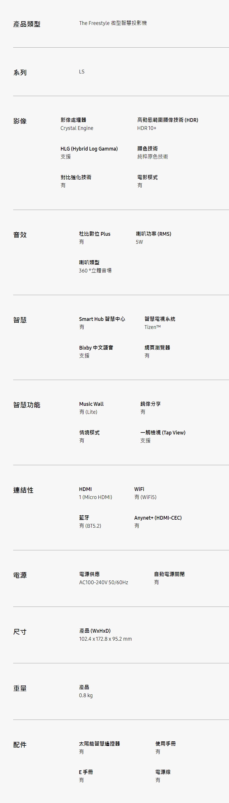 SAMSUNG 第2代 The Freestyle 微型智慧投影機 SP-LFF3CLAX