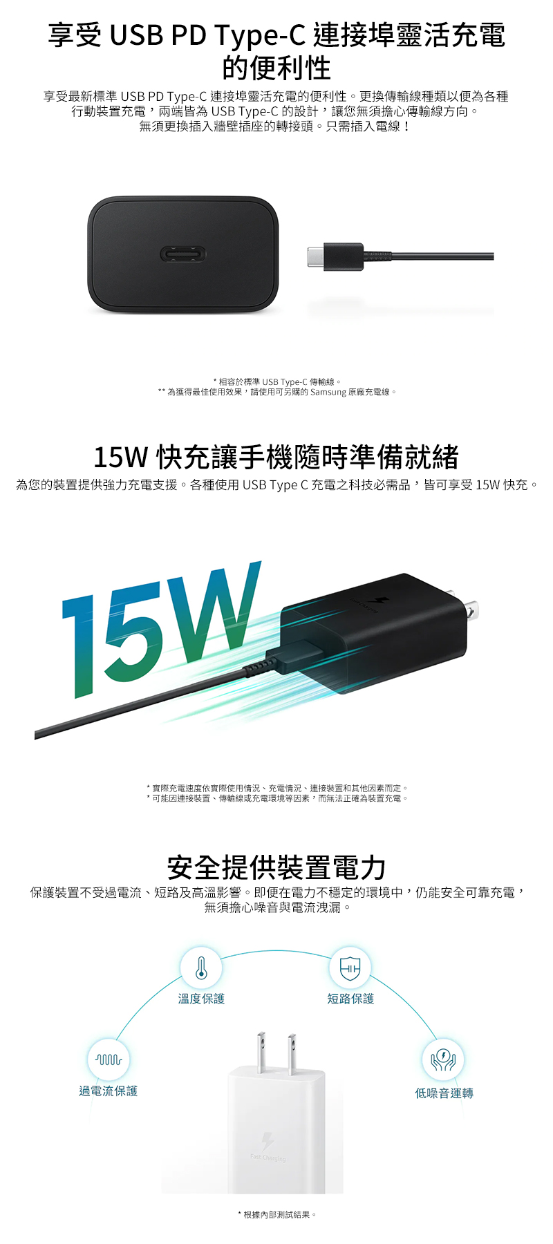 享受 USB PD Type-C 連接埠靈活充電的便利性 15W 快充讓手機隨時準備就緒 安全提供裝置電力