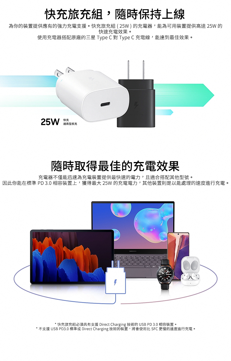 SAMSUNG 25W 快充旅充組 Type C 黑