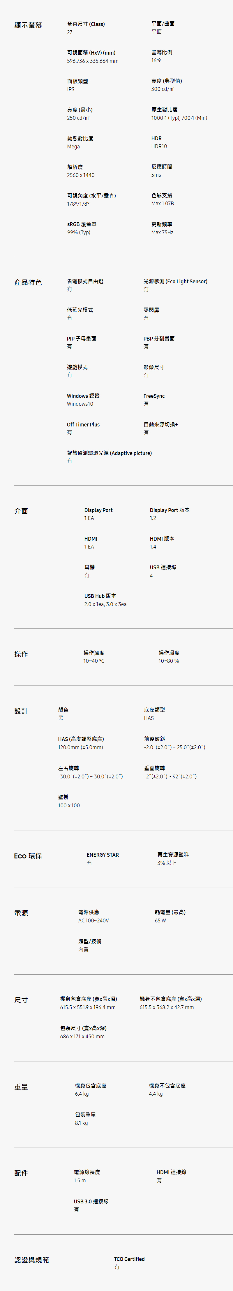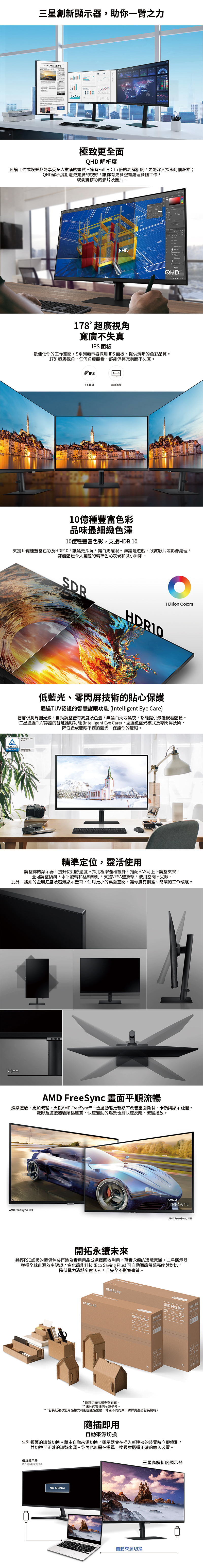 QHD (2560 x 1440) 高解析度 支援10億種豐富色彩及 HDR10 超廣視角,寬廣不失真