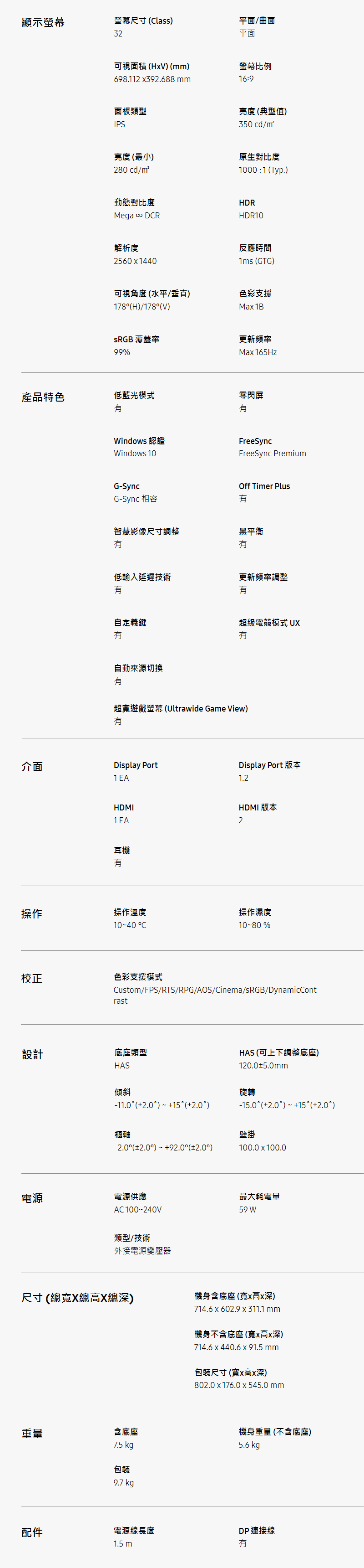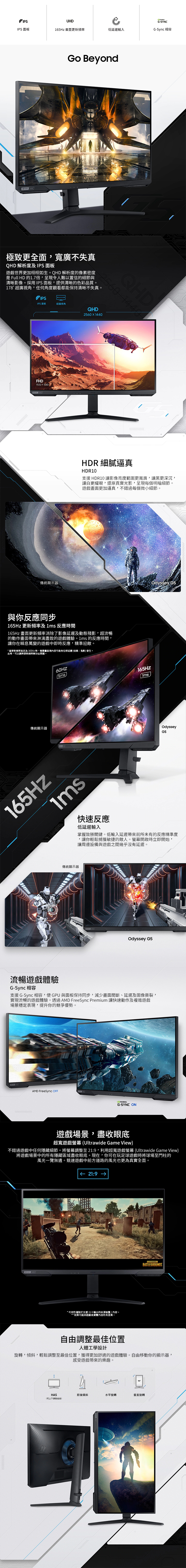 【隨貨贈】 7-11禮劵 $1000 ============================================= 165Hz 畫面更新頻率,極速順暢不閃爍 支援 G-Sync 相容,實現流暢的遊戲體驗 1ms 反應時間,與你反應同步