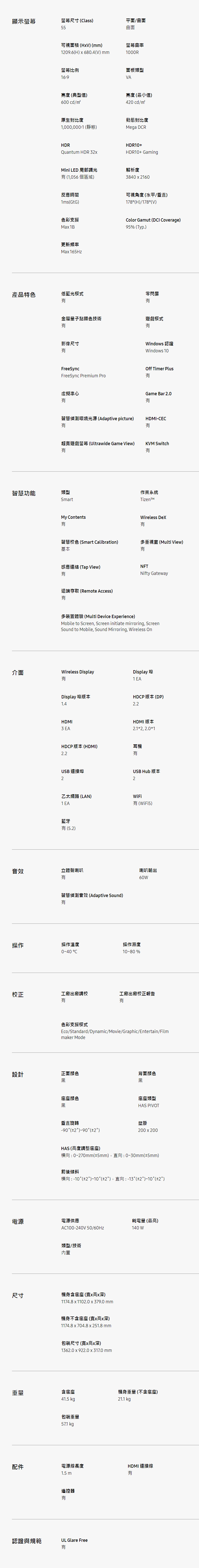 55吋直式座艙模式,探索全新視界 支援 4組輸入的多重視窗,效率全面提升 165Hz 更新頻率與 1ms(GtG)反應時間,流暢的遊戲體驗