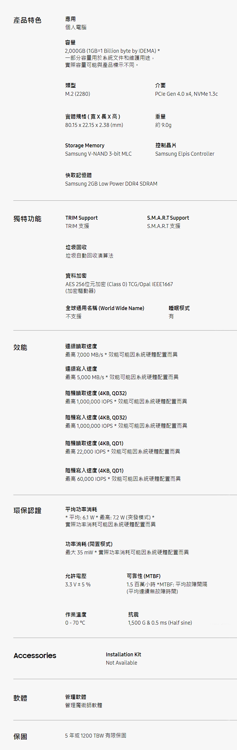 ※儲存產品欲退貨,退回的商品必須為全新未拆封且未使用狀態 高水準的 M.2 SSD 固態硬碟 可靠的智慧散熱控制 快閃記憶體的首選
