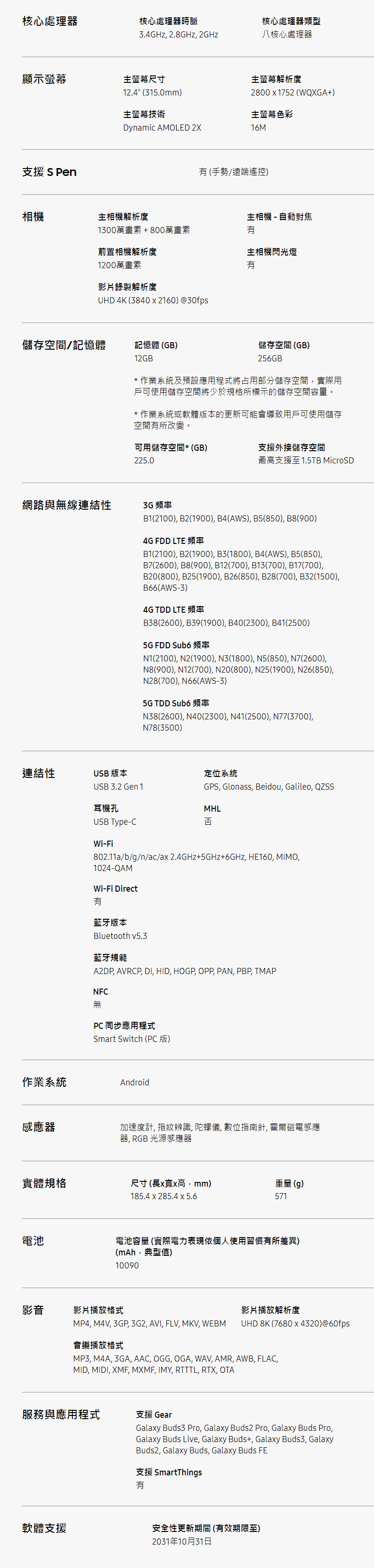 體驗超大畫面,驚人的解析度與超順暢的互動,沉浸在劇院般的體驗中 超高速、強大的處理器,搭配更大的均熱板冷卻系統讓平板保持冷卻 大螢幕徹底發揮 Galaxy AI 的功能,體驗最佳的工作效率和樂趣 使用塗鴉轉圖像功能,把你的草圖和塗鴉變成藝術作品 Samsung Notes 化身數學計算助理,隨算解答,超懂算 更大的電容量,配合快速充電回復滿電狀態